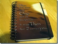 I also bought a journal to write in all my thoughts to God, a prayer journal… and to write positive quotes in… a thankful journal…